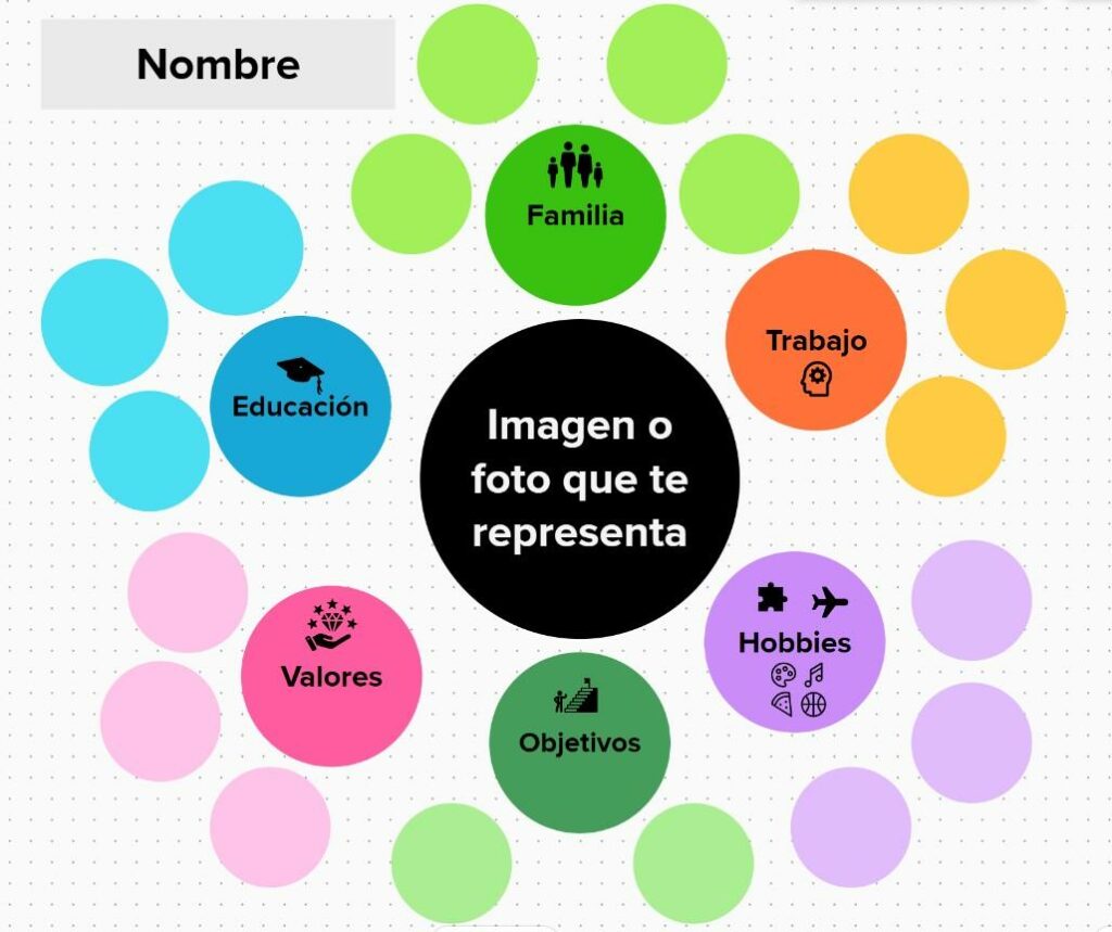 La herramienta contribuye a establecer conexiones más estrechas entre los integrantes de un equipo, posibilitando así una mayor comprensión de las personas y promoviendo una colaboración más efectiva (Management 3.0, 2016). La implementación de Personal Maps se inicia al colocar el nombre de la persona en el centro de la representación gráfica. A continuación, se añaden categorías que resultan relevantes alrededor del nombre, tales como familia, educación, trabajo, hobbies, amigos, objetivos y valores. A medida que avanza el proceso, es posible incorporar más aspectos pertinentes acerca de la persona. Personal Maps puede ser confeccionado en soportes físicos como hojas de papel o en herramientas informáticas tales como PowerPoint, Mural, Miro, Prezi, entre otros.